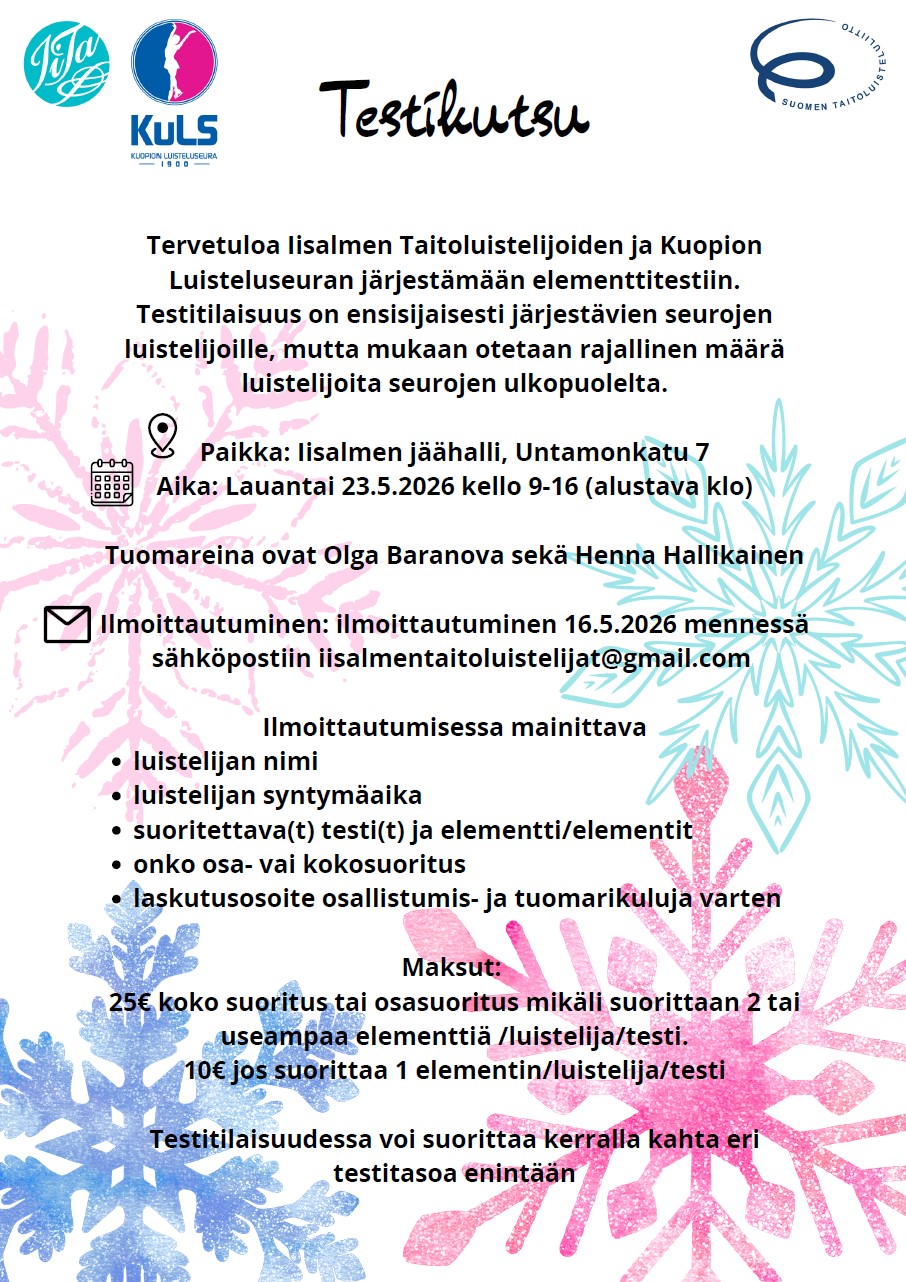 Ota yhteyttä ja kysy lisää: iisalmentaitoluistelijat@gmail.com tai 0442469377/hallitus